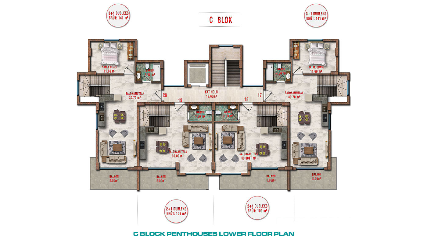 Помимо стандартных квартир, в Турции широко представлены дуплексы и пентхаусы. В местной трактовке дуплекс — это многоуровневые апартаменты внутри многоквартирного дома (за исключением садовых дуплексов с отдельным входом). Исторически концепция зародилась в Англии XIX века, когда к дому пристраивали вторую половину для взрослых детей.